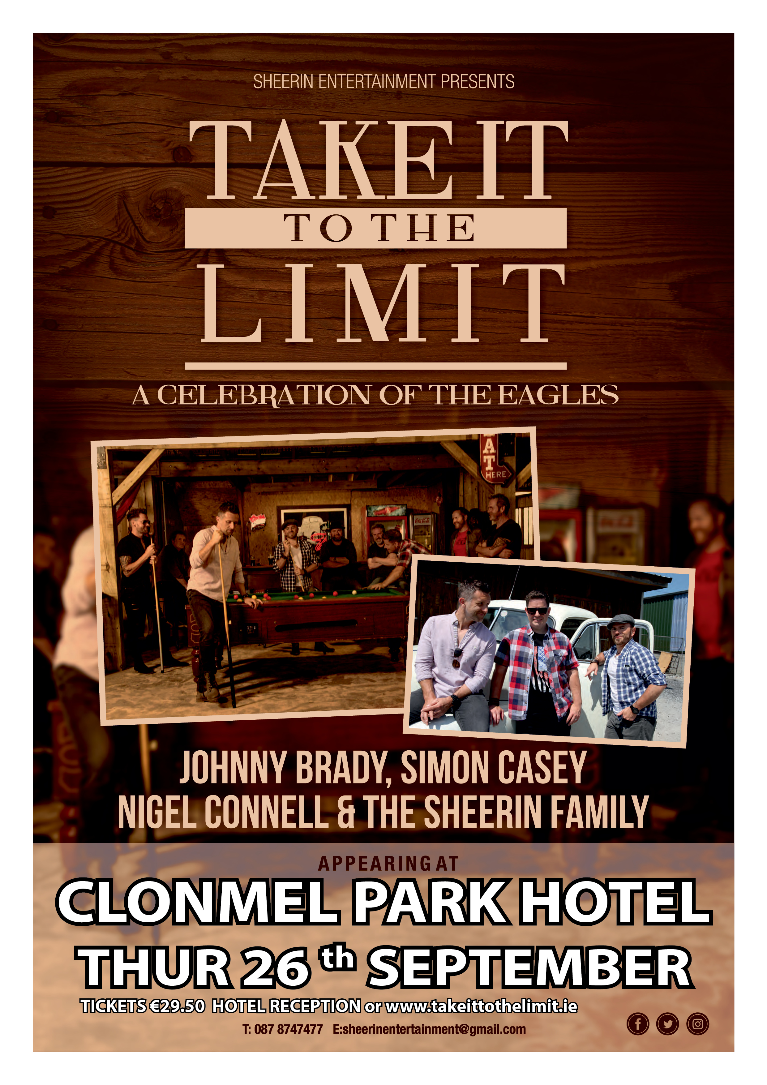 Tickets €29.50 from Clonmel Park Reception and www.takeittothelimit.ie