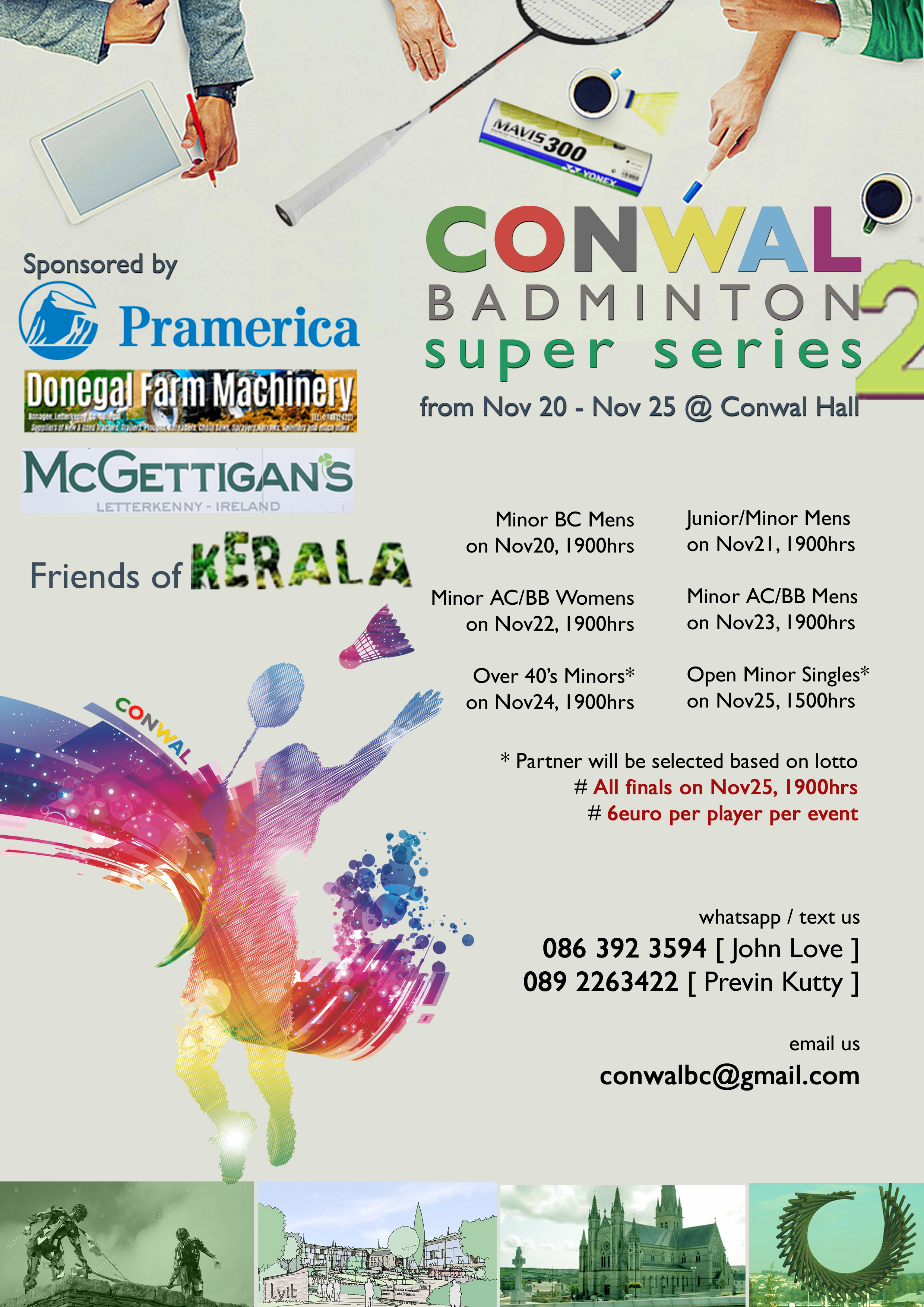 # Venue: Conwal Badminton Hall, opposite to St Eunans Cathedral, Letterkenny.