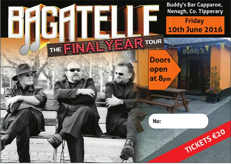 Bagatelle will be playing live in Buddy's Bar Capparoe Nenagh on Friday 10th June 2016.