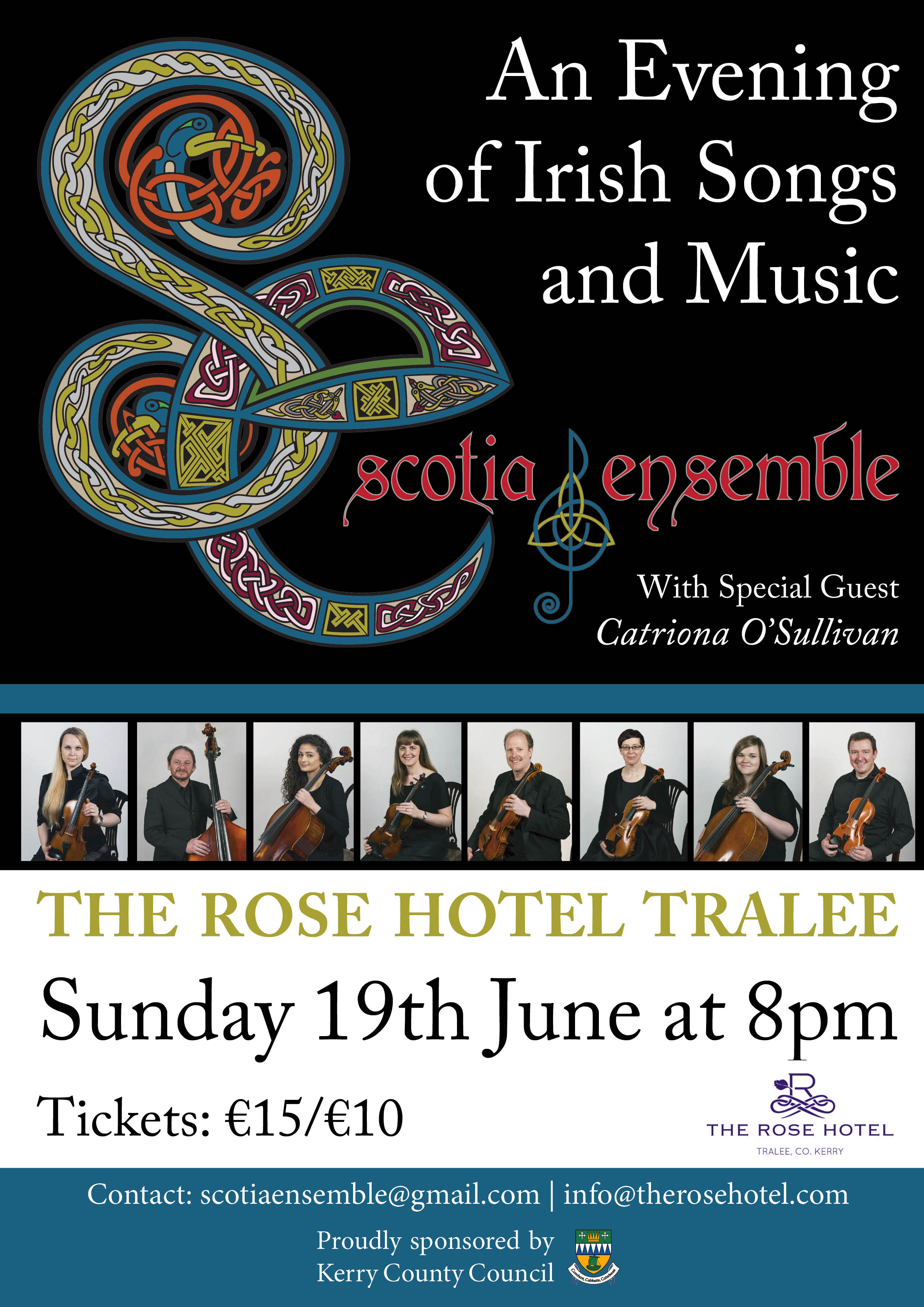 The Scotia Ensemble is Kerry's premier professional classical music ensemble and is proudly sponsored by a Kerry County Council Arts Act Grant.
